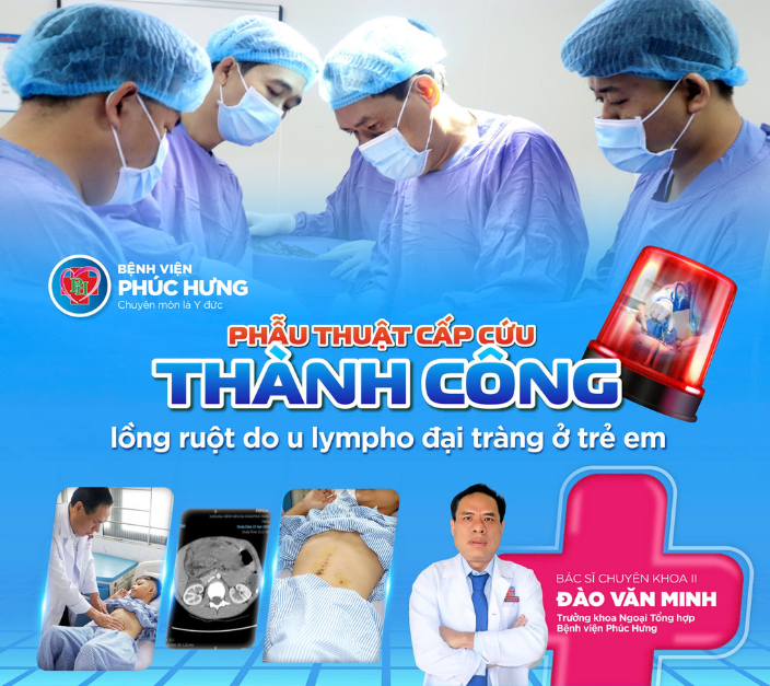 Khân trương các Bác sĩ tiến hành mổ cấp cứu, sau khi tiến hành mổ tháo lồng ruột thấy nguyên nhân lồng ruột do khối u ở manh tràng lớn tới 4cm, ekip của Bác Minh quyết định cắt đại tràng phải, nạo vét hạch và lập lại lưu thông ruột bằng nối hồi tràng – đại tràng ngang. Khi làm xét nghiệm giải phẫu bệnh kết quả Lymphoma dòng tế bào B ở manh tràng. Sau mổ 7 ngày tình trạng cháu ổn định và đã xuất viện.