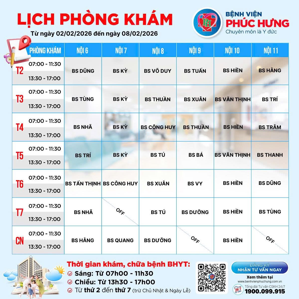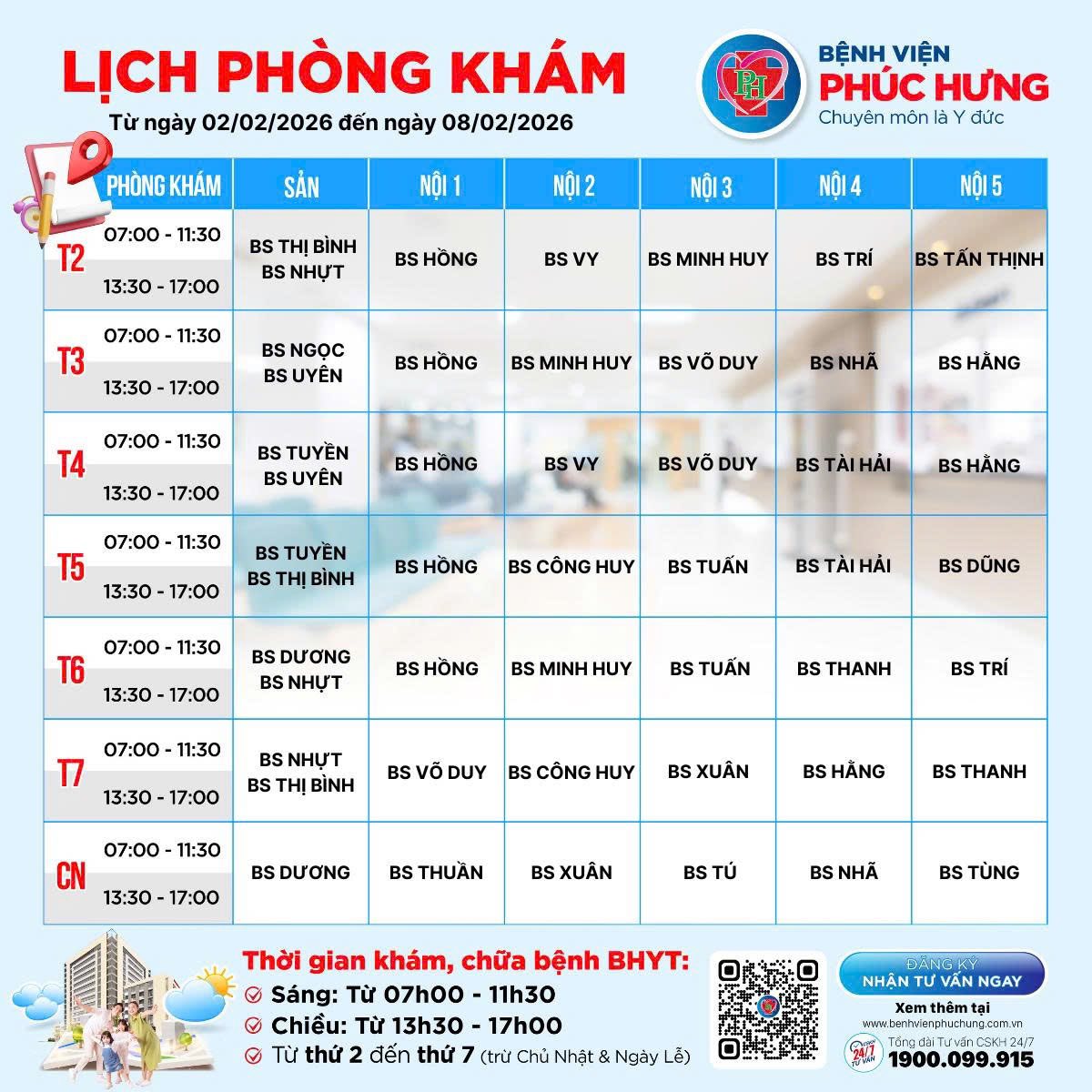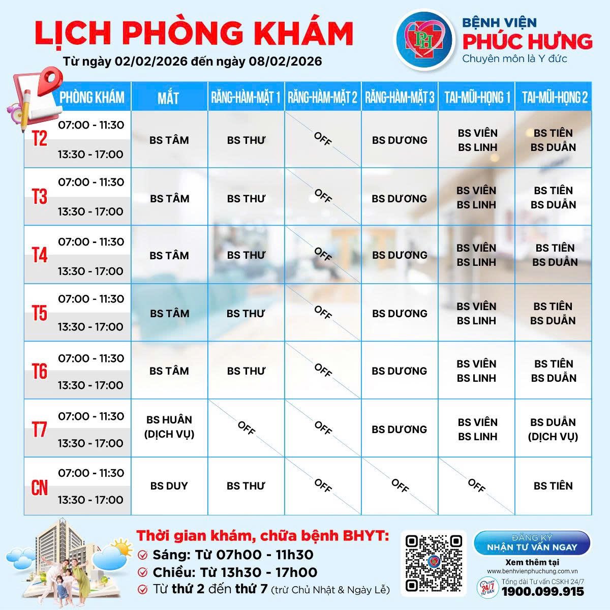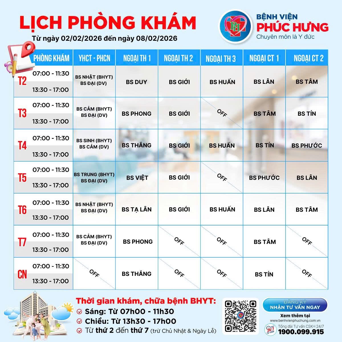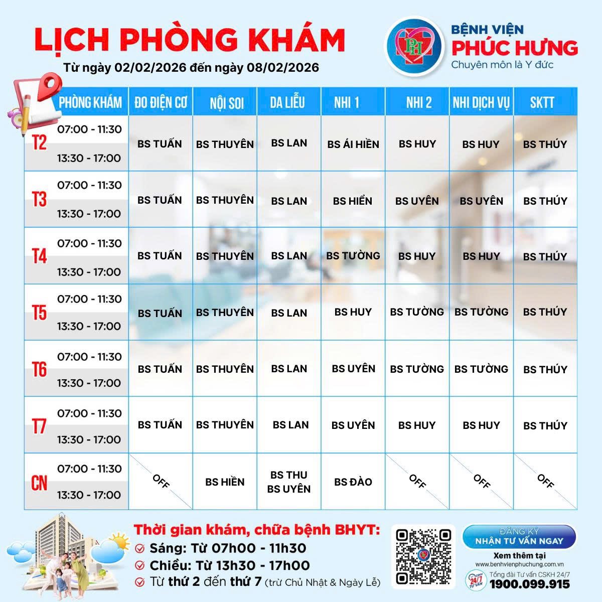 LỊCH PHÒNG KHÁM | 02/02 - 08/02