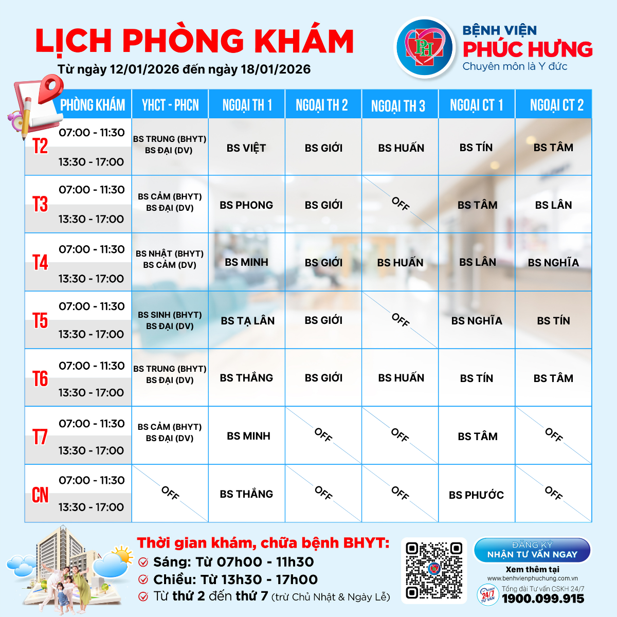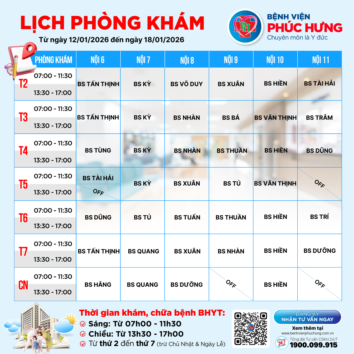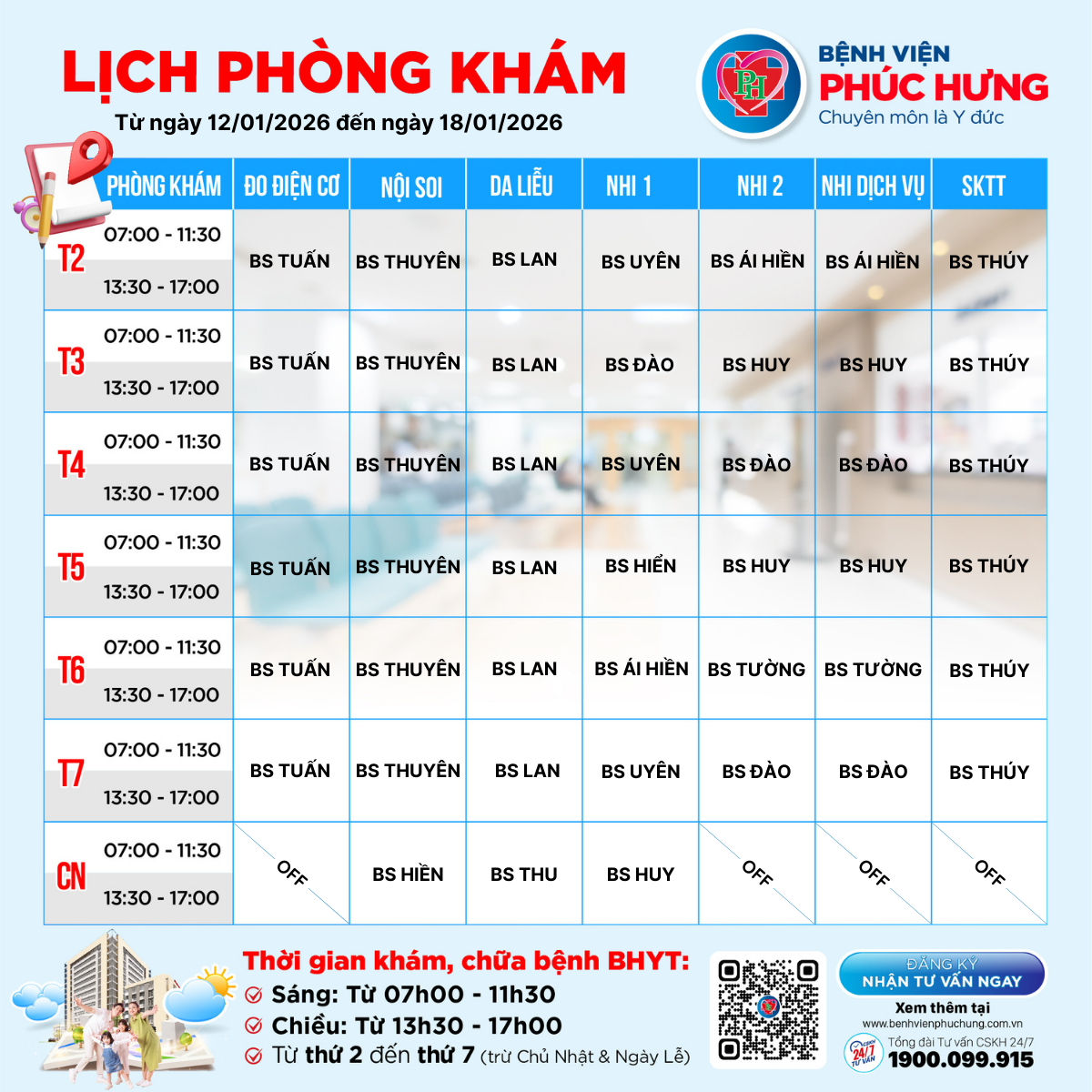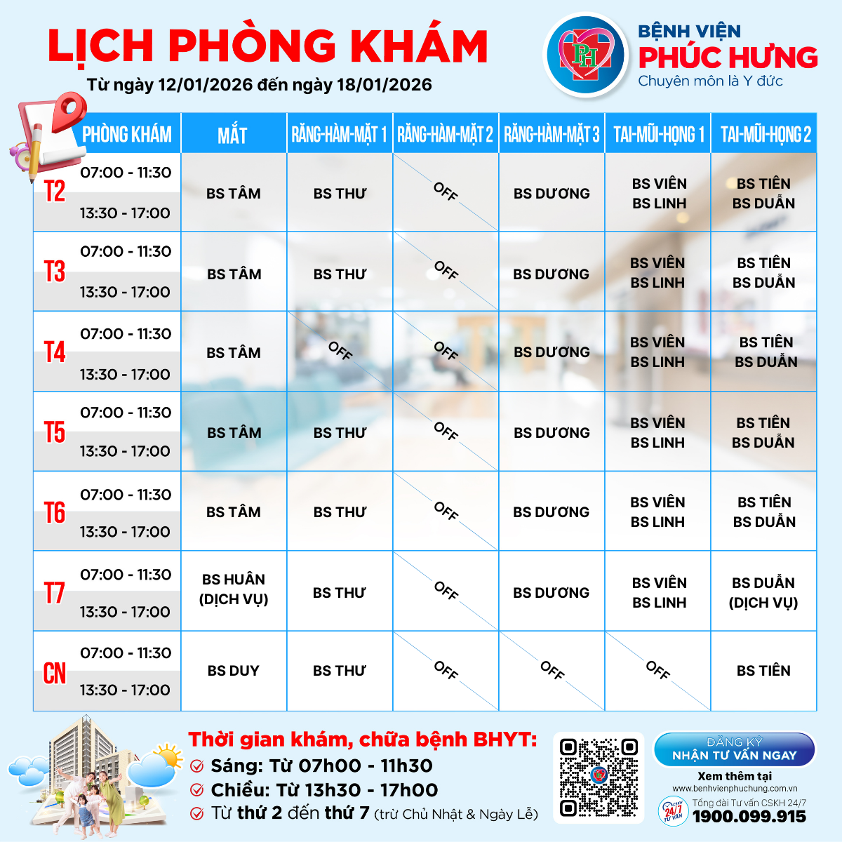 LỊCH PHÒNG KHÁM | 12/01 - 18/01