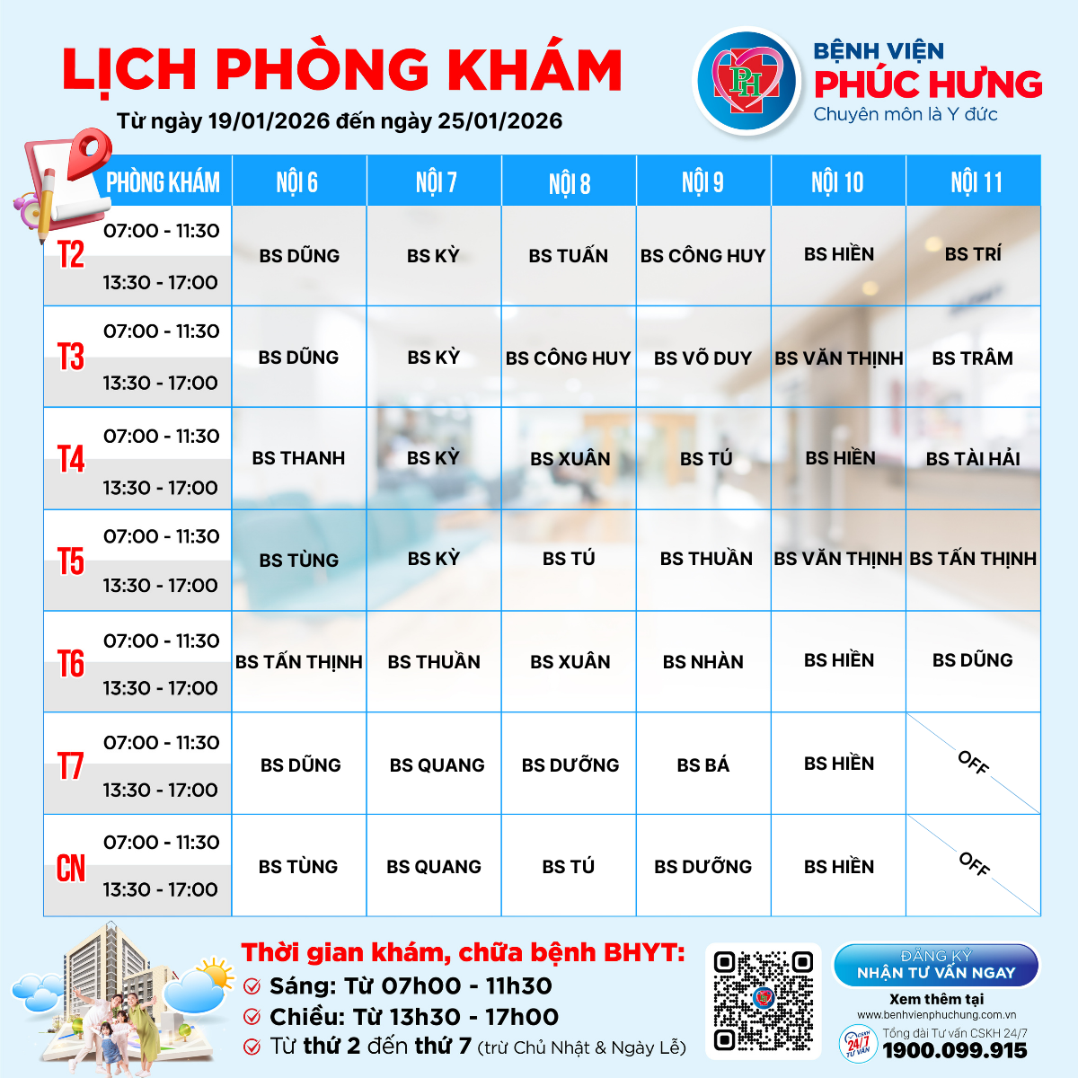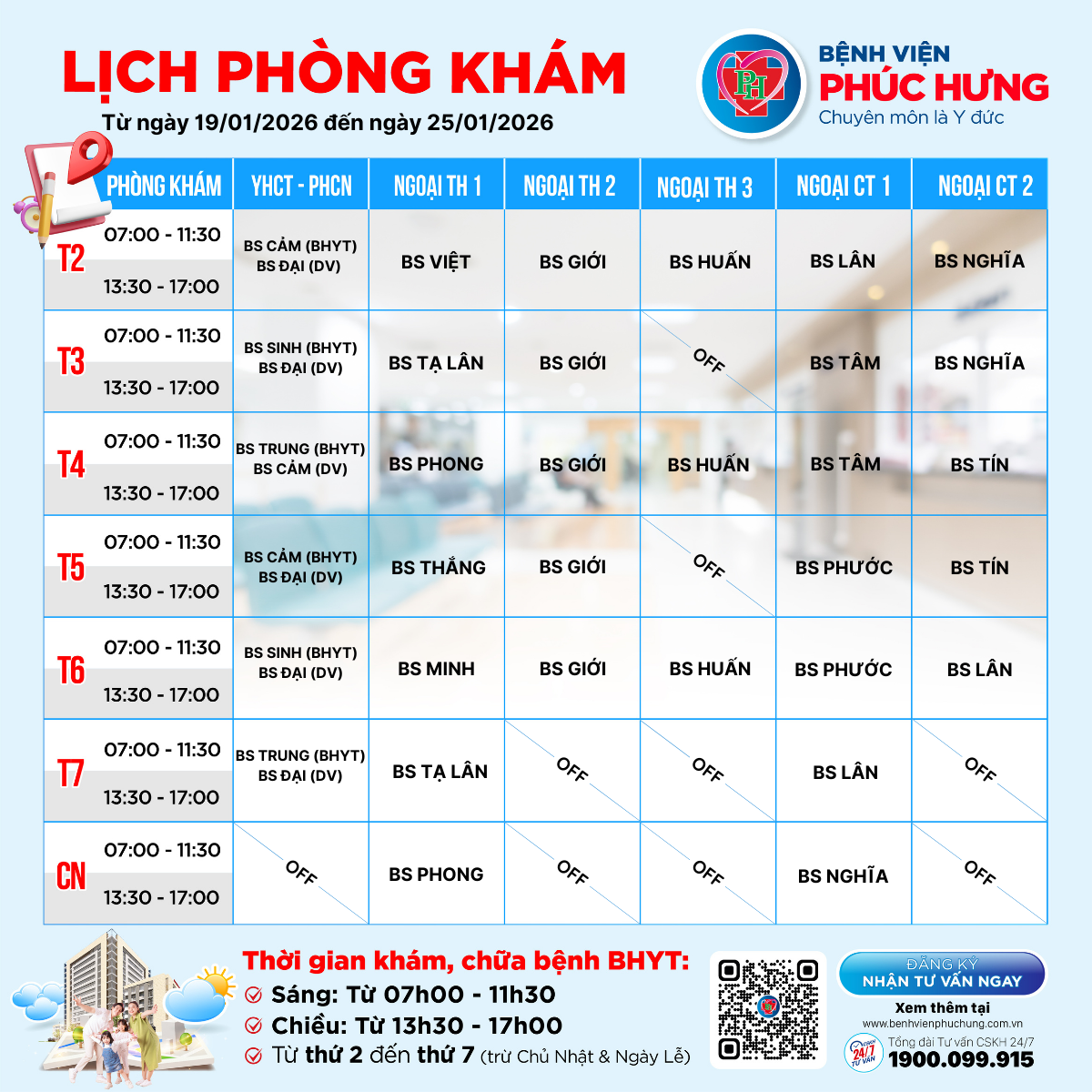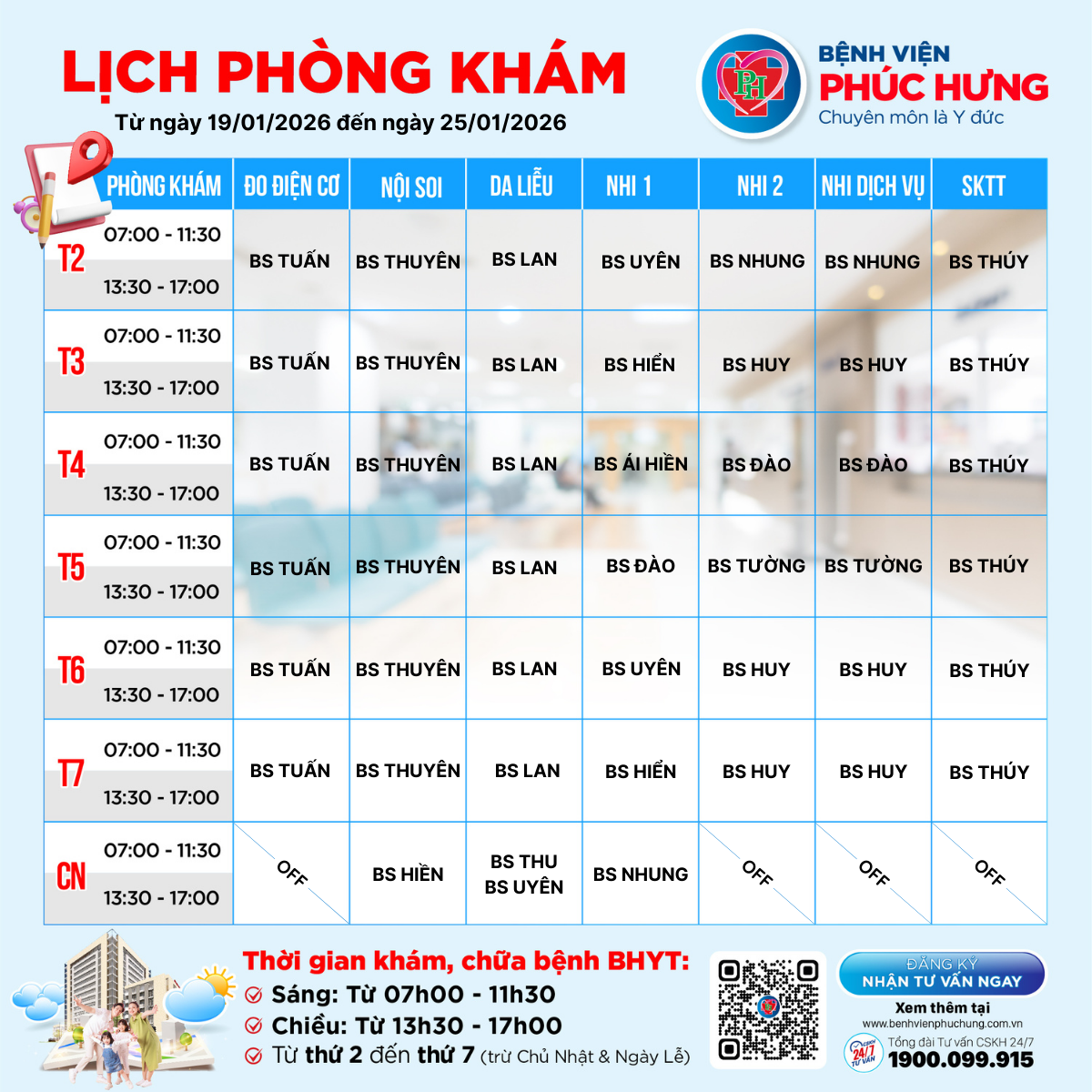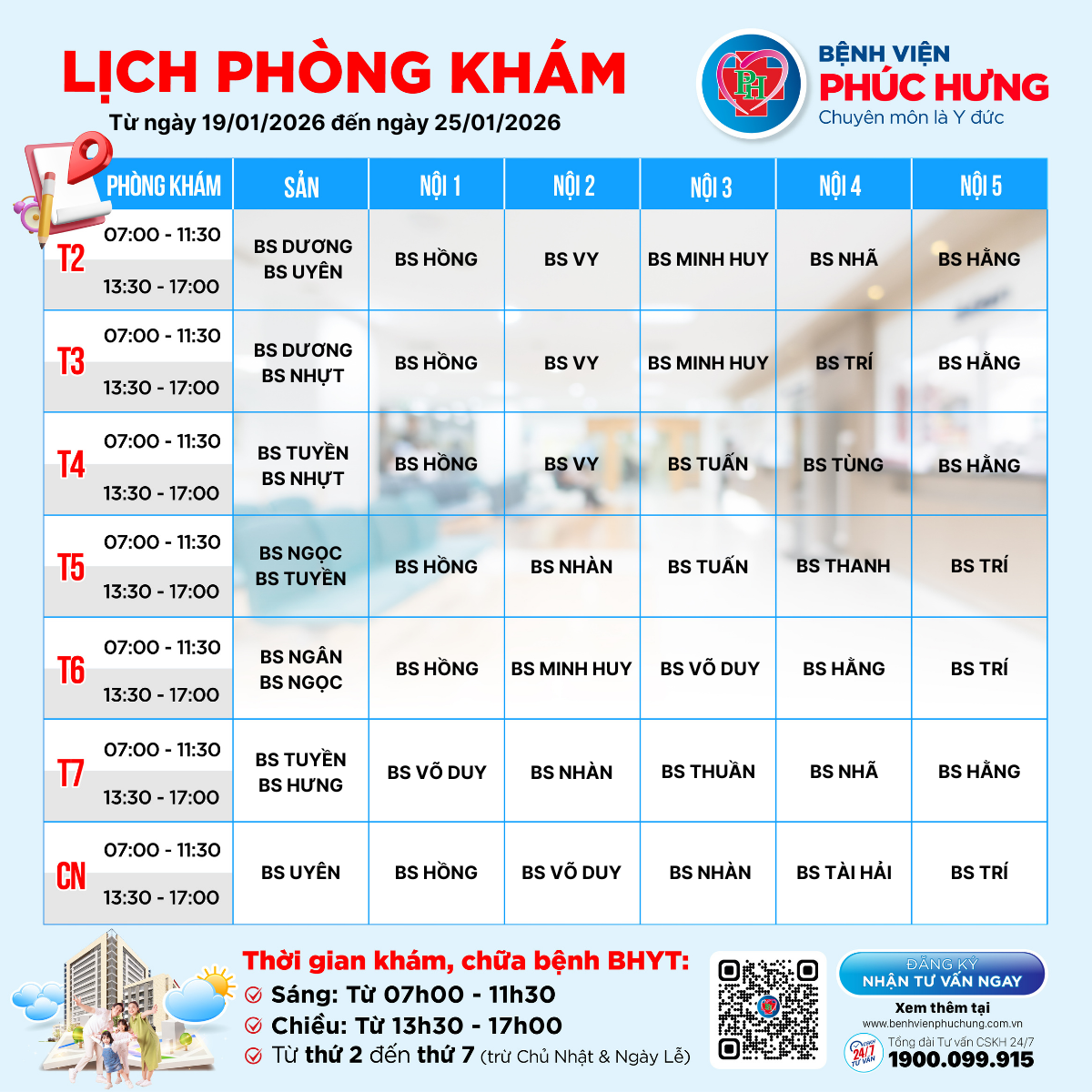 LỊCH PHÒNG KHÁM | 19/01 - 25/01