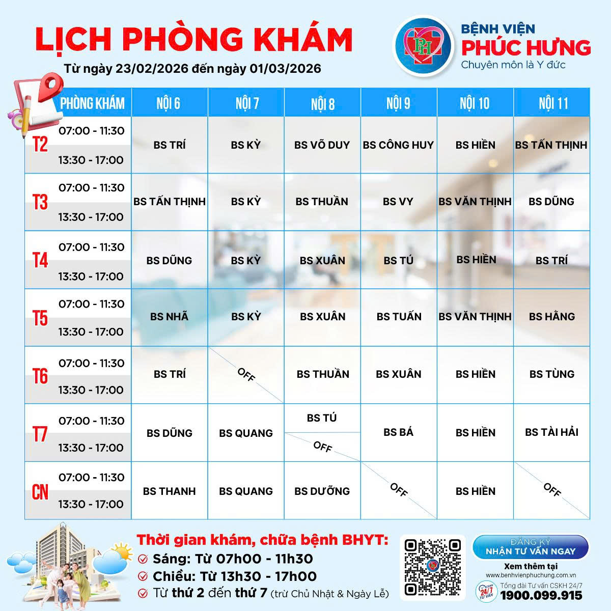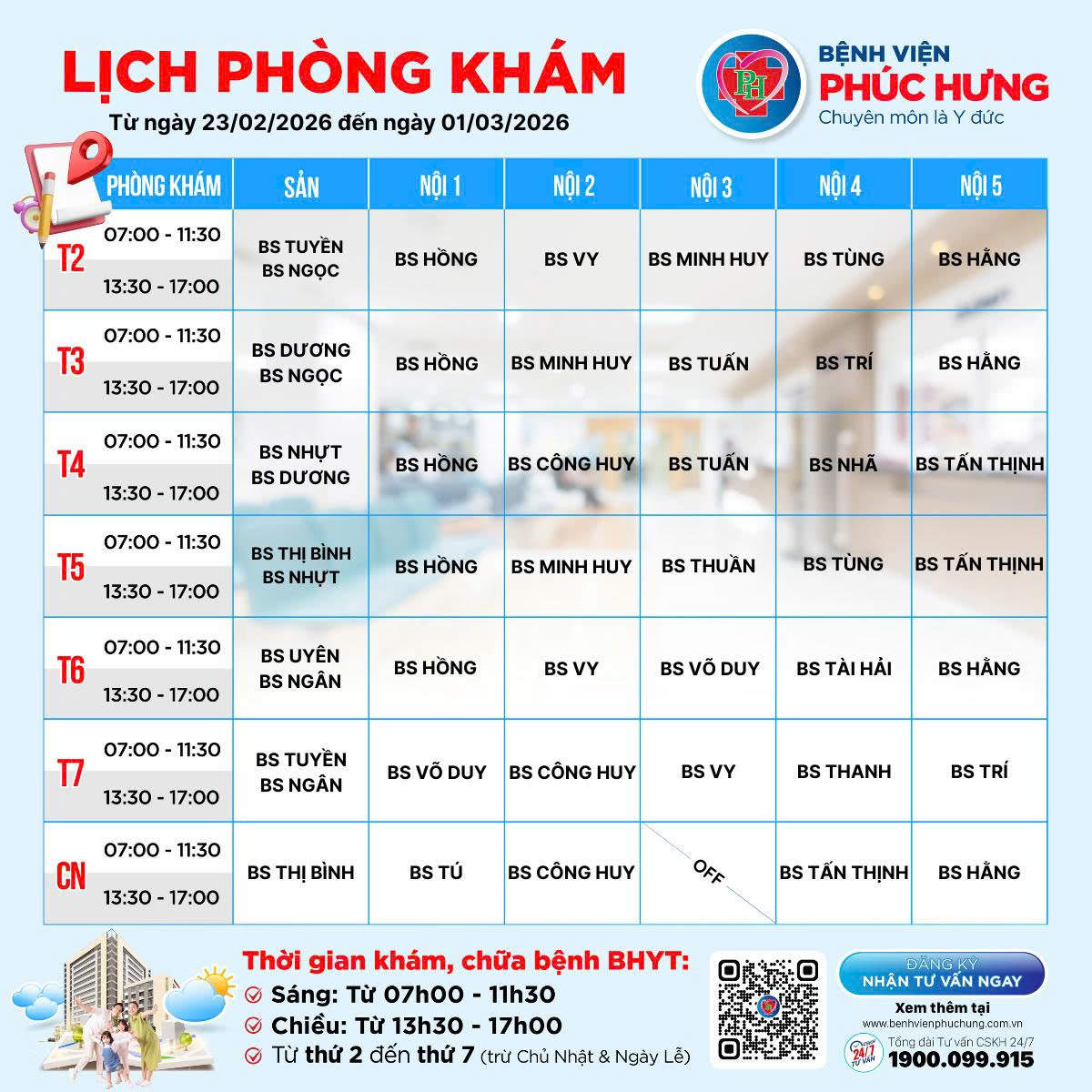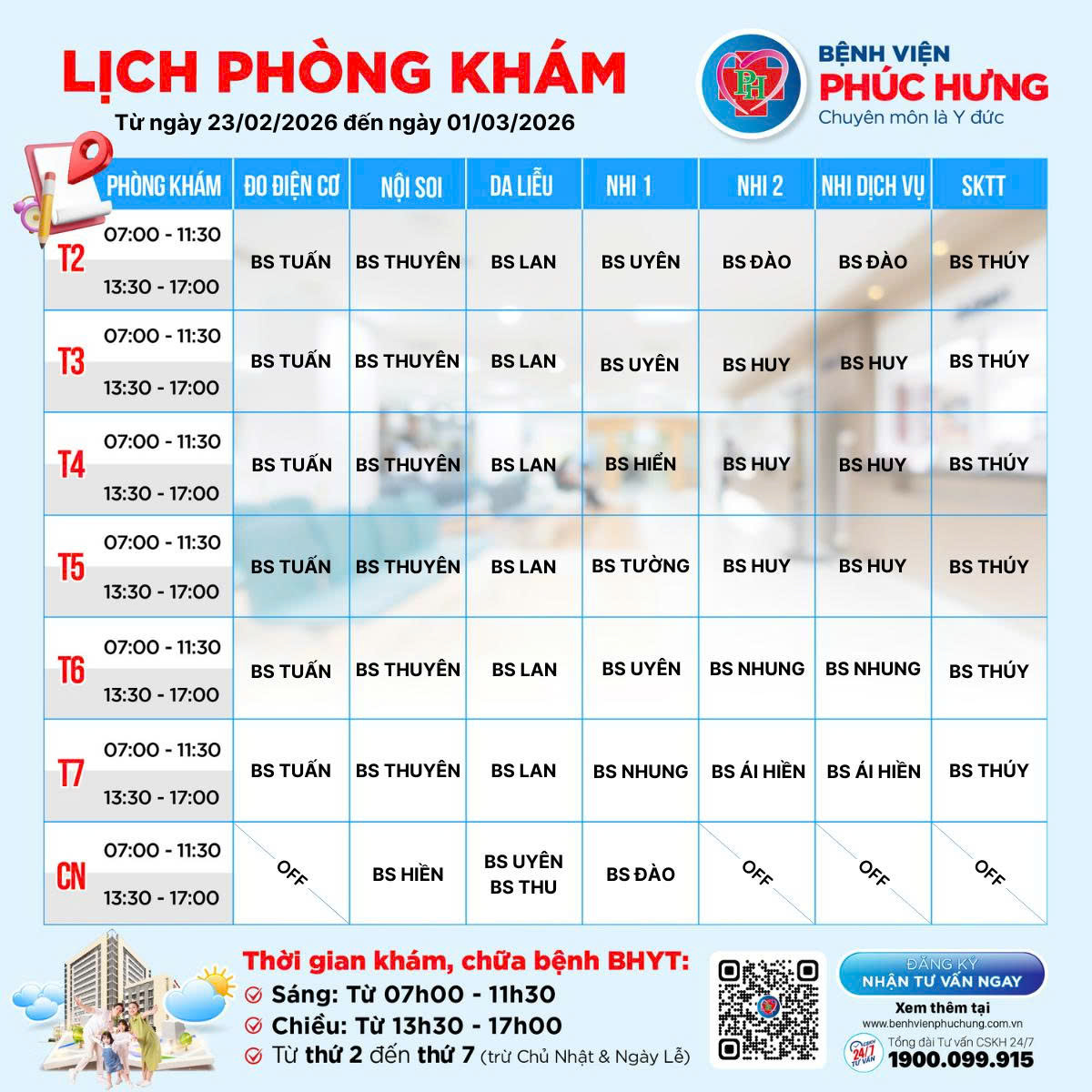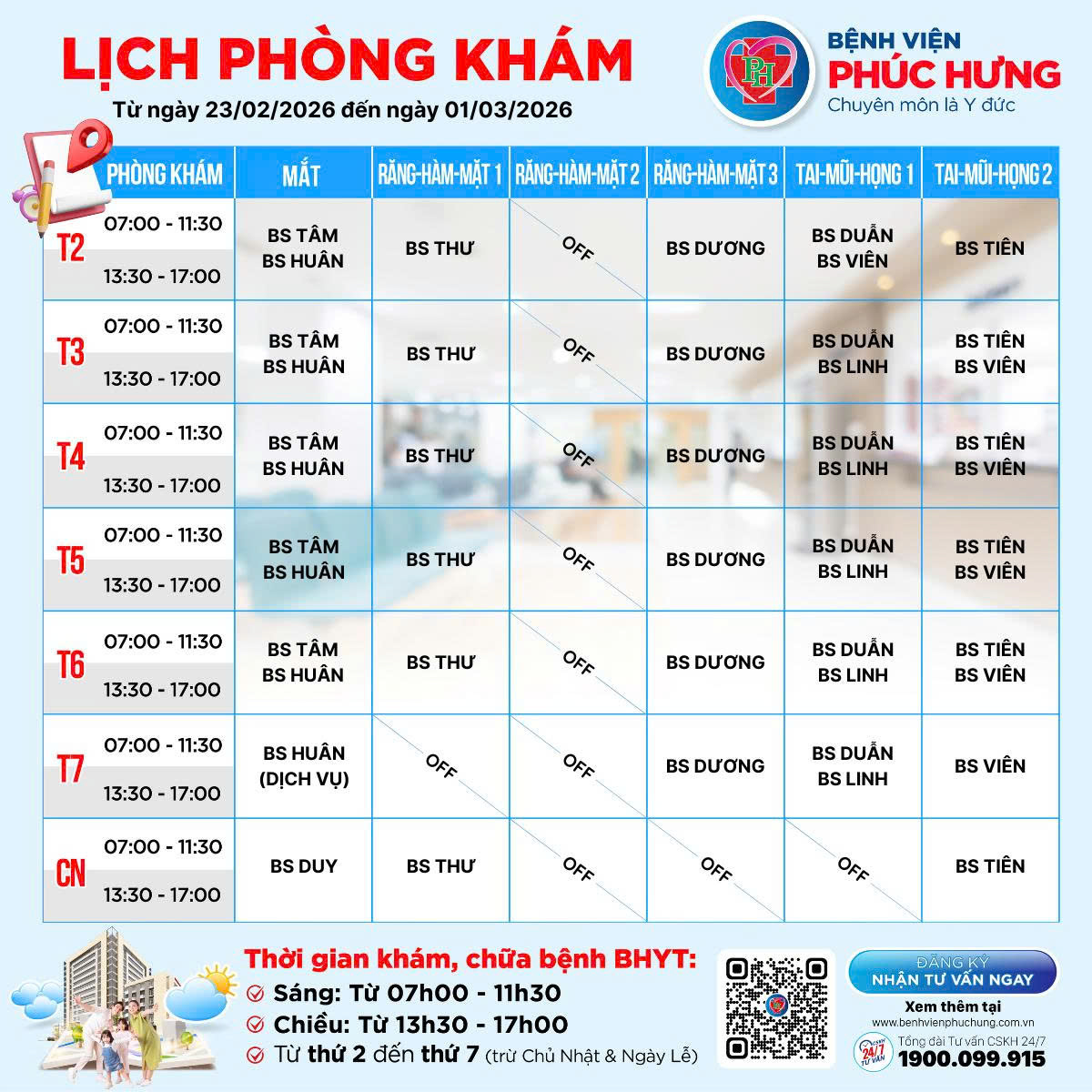 LỊCH PHÒNG KHÁM | 23/02 - 01/03