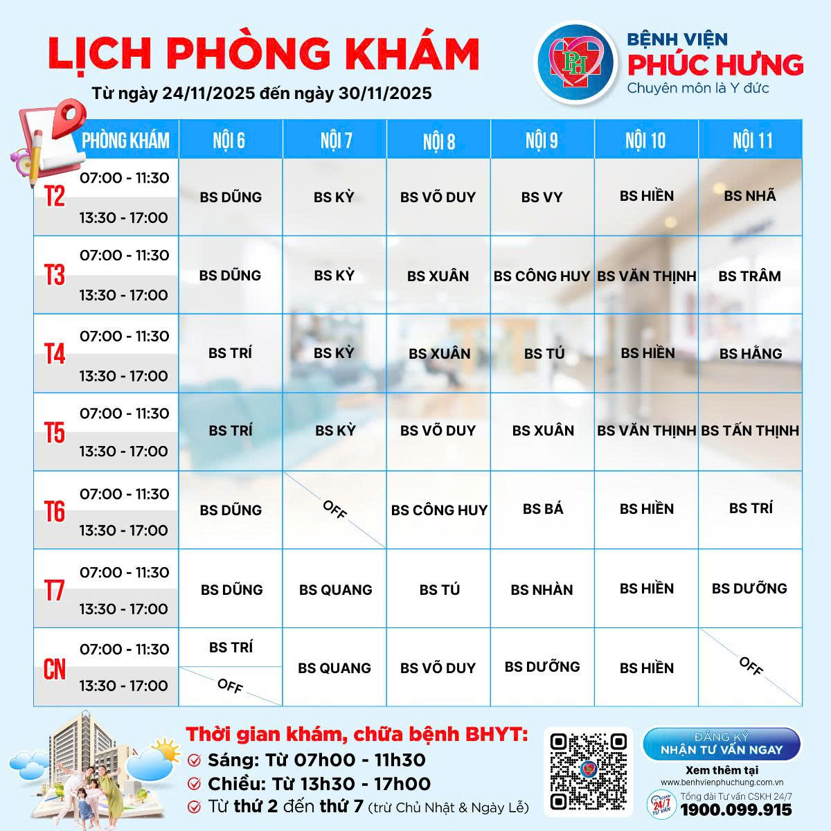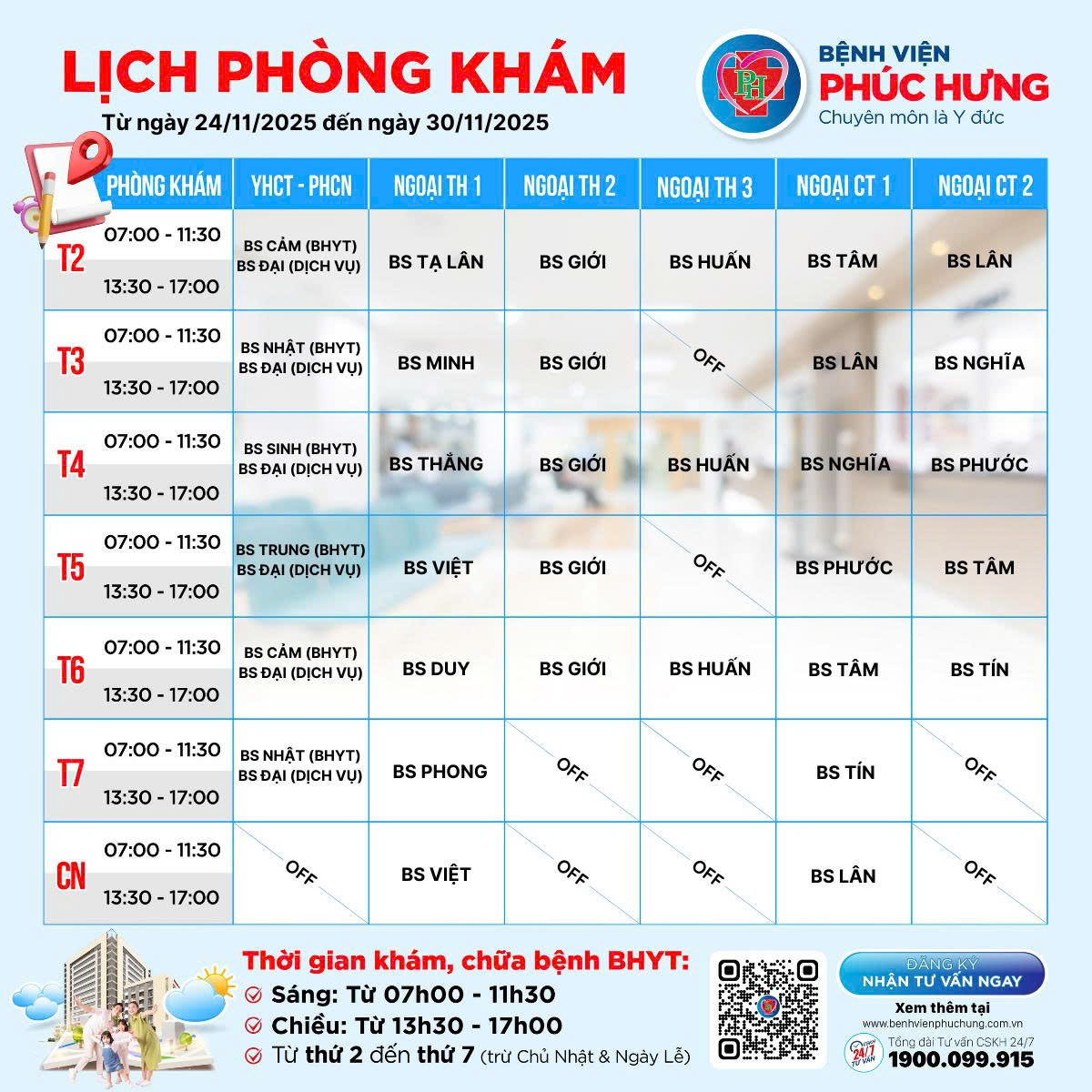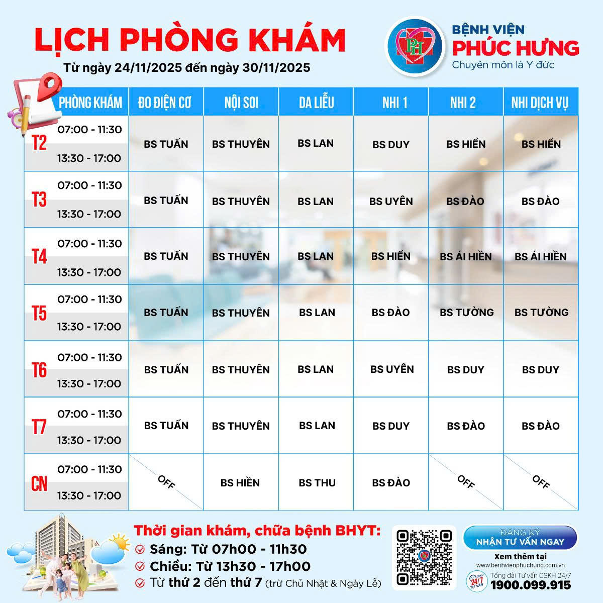 LỊCH PHÒNG KHÁM | 24/11-30/11