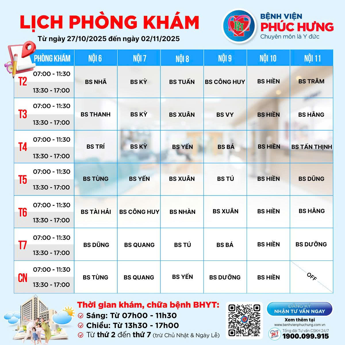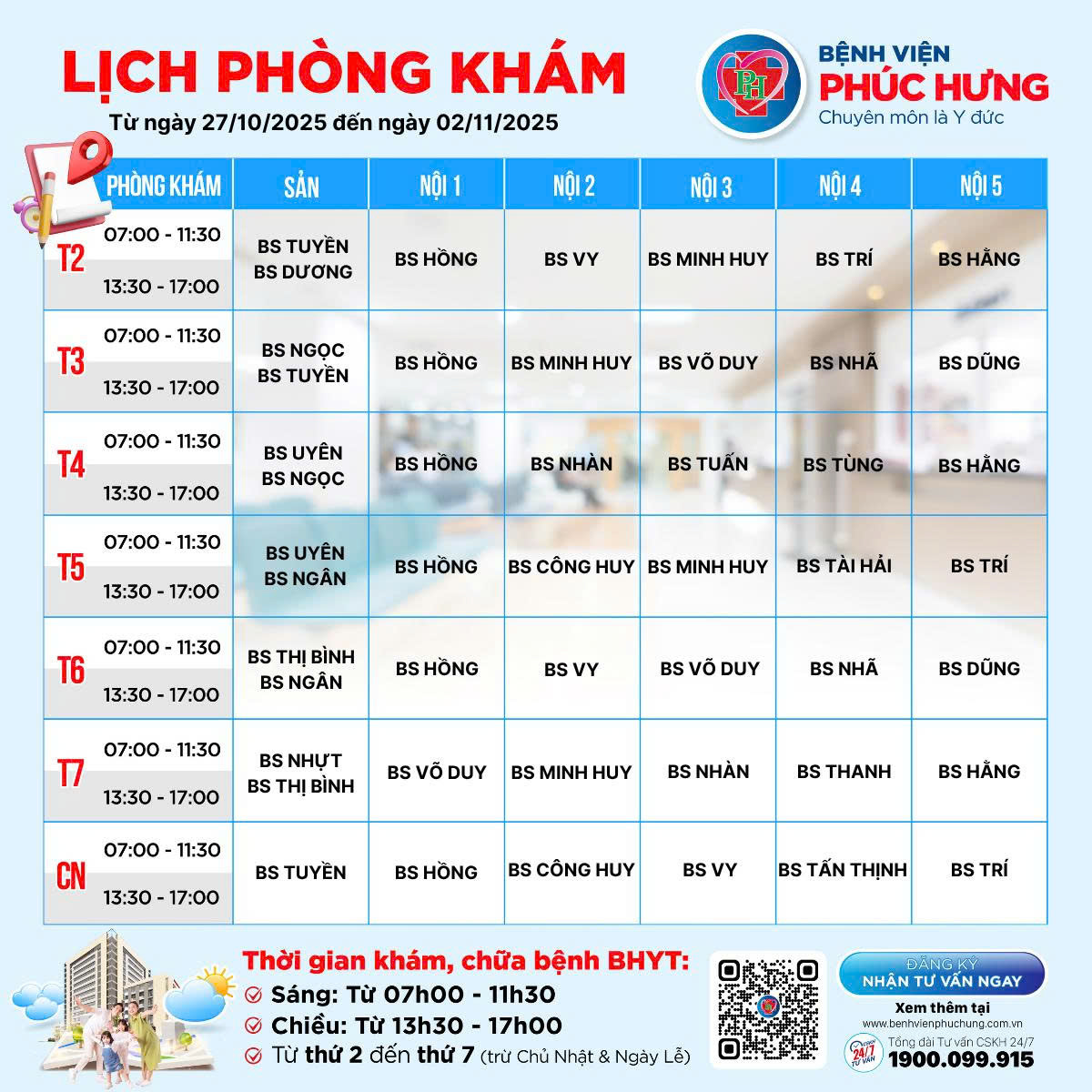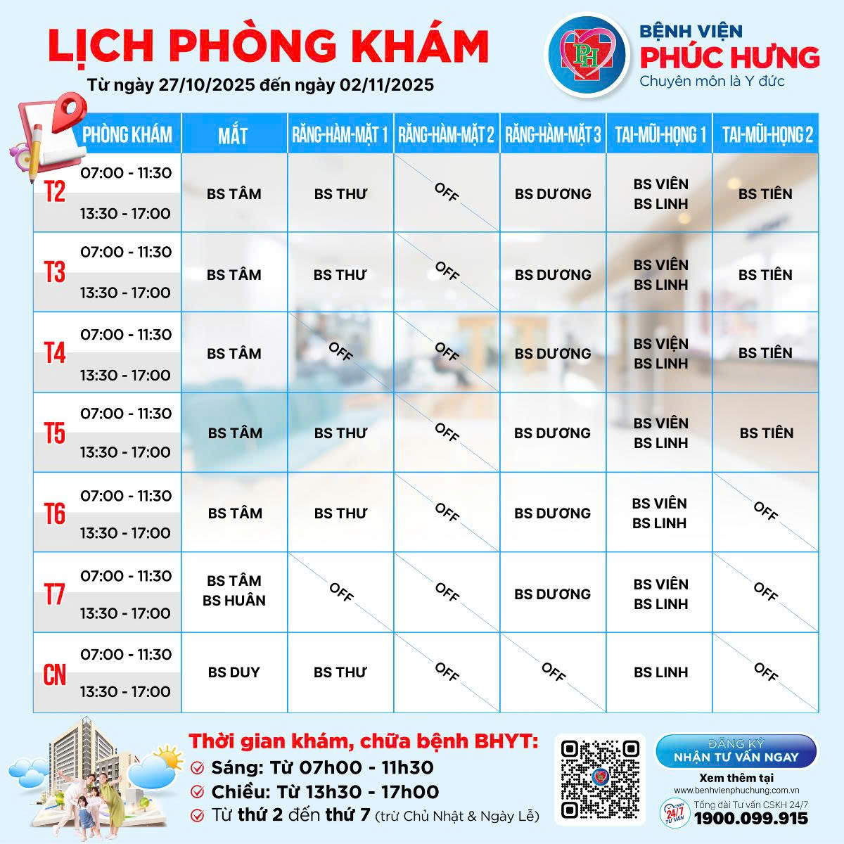 LỊCH PHÒNG KHÁM TỪ 27/10-02/11