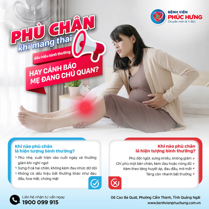 Phù chân khi mang thai là tình trạng khá phổ biến, đặc biệt ở những tháng cuối thai kỳ. Tuy nhiên, không phải trường hợp nào cũng “bình thường” như nhiều mẹ vẫn nghĩ. Việc nhận biết đúng dấu hiệu sẽ giúp mẹ bầu chủ động bảo vệ sức khỏe cho cả mẹ và bé.