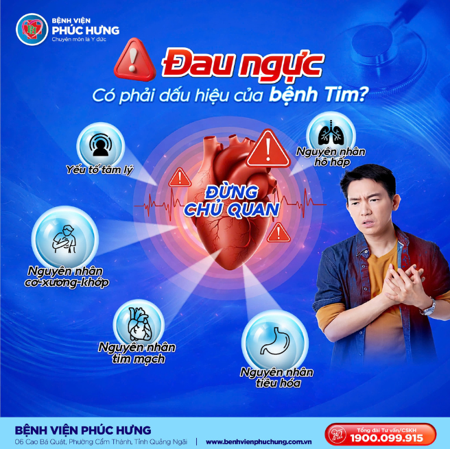 Bệnh viện Phúc Hưng với đội ngũ bác sĩ giàu kinh nghiệm cùng hệ thống trang thiết bị hiện đại hỗ trợ chẩn đoán chính xác các bệnh lý tim mạch. Việc thăm khám sớm không chỉ giúp phát hiện nguyên nhân gây đau ngực mà còn góp phần phòng ngừa và điều trị hiệu quả các bệnh lý nguy hiểm.